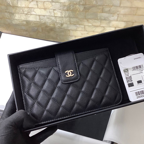 샤넬 케비어 카드 장지갑 C14011 금장